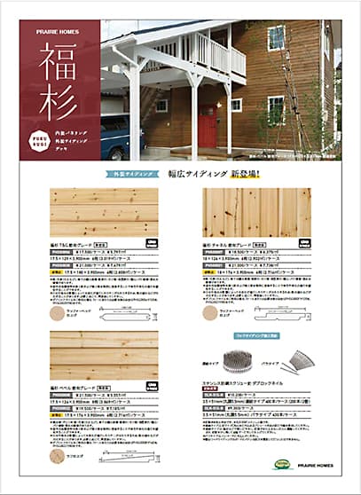 プレイリーホームズで取り扱っている商品のカタログ一覧です。実物でご覧になりたいかたは「お問い合わせ」からカタログをご請求ください。